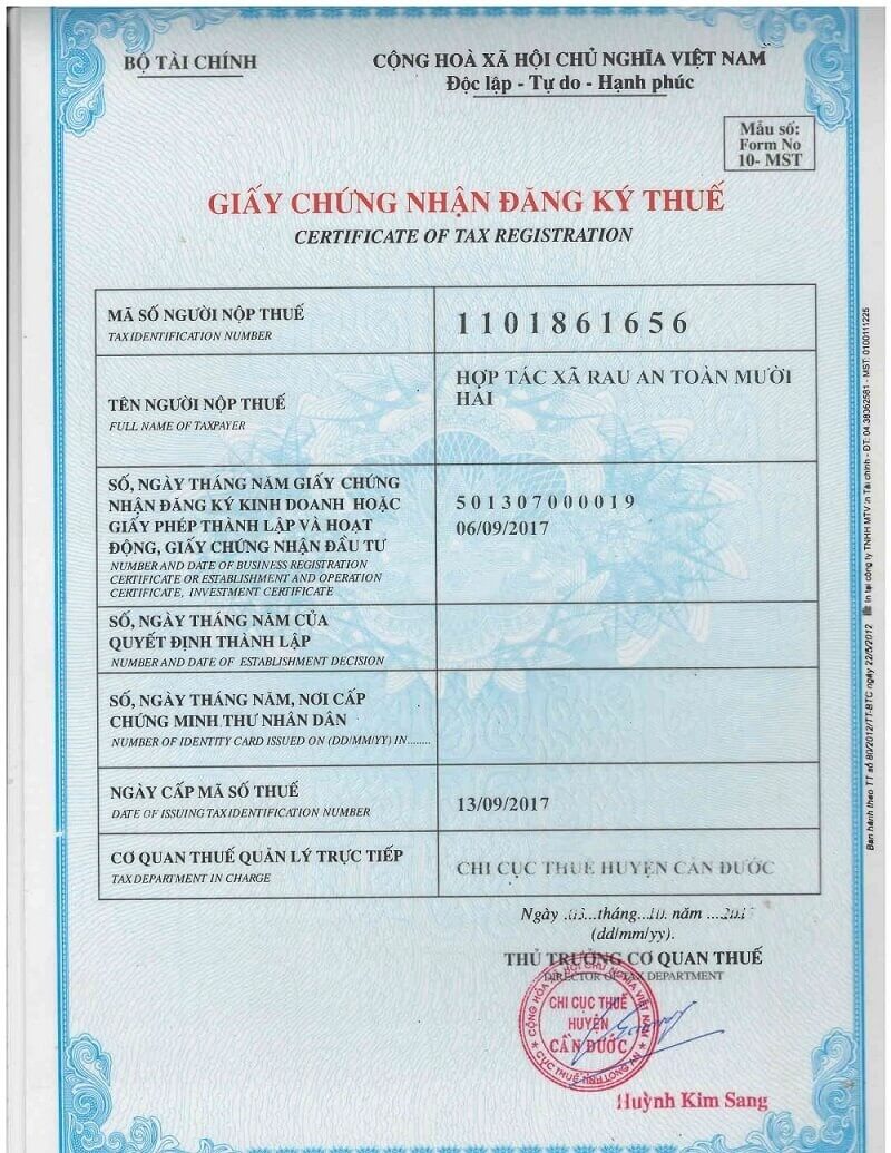 - Thông tin về thời gian cấp giấy chứng nhận đăng ký thuế.